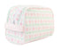 Coated, clean, and cute! The Dopp Kit is a must-have travel companion. Big enough to fit all of your travel necessities - toiletries, medicines, hairbrushes and bows, you name it! Inside you will find a mesh pocket to help you keep up with your smaller items.