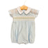 Blake Smocked Boy Bubble: Blue with White Peter Pan & Mint/Blue/Yellow Smocking