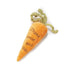 "Shake rattle and nibble" embroidery on our vibrant orange velour carrot rattle with crinkly green leaves. Perfect way to entertain any little bunny.