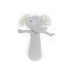 Friendly Chime Puppy is made of soft gray velour with adorably perky elephant ears and hand-embroidered details for the face, with pinked cheery cheeks, and soft dangling arms for chewing and soothing.