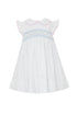 Camille Smocked Dress: White with Light Blue Polka Dots