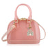 Cate is the original classic jelly bag for carrying all of her hopes, dreams and beautiful things. Made of durable jelly material with matching handles and zipper entry. She comes with a matching cross-body strap and is available in lots of fun colors including this gorgeous light pink sparkle. Make our light pink Cate Jelly Bag even more special with a handmade Pink Crystal Castle Charming Addition. Each Charming Addition is handmade in Atlanta with love!