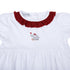 Magnolia Baby white pima cotton girl bubble with crimson trim & ruffle collar & elephant with football embroidery. This brand tends to run small, consider sizing up.