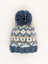 Huggalugs best selling beanie hat knit in soft, chunky yarn, this hat has an intricate pattern in Slate Surf, Pebble and Winter White yarn and topped with a pom pom.