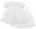 An exquisite, one of a kind slip dress that will make your little one look like the princess she is! Intricate floral heart embroidery in pink and green embellishes the front of the dress and the puffed sleeves in a design that will take your breath away. The slip beneath is made of solid white with scalloped stitched edges and matching embroidery just above the lace hem. Your little lady definitely deserves an ensemble as classy, elegant, and elaborate as this!
