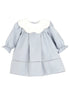 Sophie & Lucas frosty blue tiwll float dress with white scalloped collar & back tie detail.