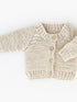 Huggalugs thick, soft sweater in garter stitch has cable trim raglan sleeves and wood buttons. Hand-knit in Slate blue yarn, it is cozy and warm. The matching knit hat you see here is available separately.