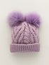 Huggalugs Fluffer Cable Knit Hat w/2 PomPoms - Lilac