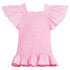 Pretty in pink with a pop of fun! This light pink smocked top features flutter sleeves and a bold hot pink trim on the bottom for the perfect mix of soft and sassy.