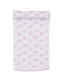 Kissy Kissy white pima cotton baby blanket with allover beary plaid print & light pink picot trim.