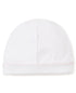 Kissy Kissy white pima cotton baby beanie hat with allover pink dot print & pink picot trim.