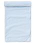 Kissy Kissy blue pima cotton baby swaddle with allover white dot print & white picot trim.