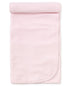 Kissy Kissy pink pima cotton baby swaddle with allover white dot print & white picot trim.