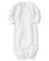 Pima cotton converter gown with allover rose print & pink picot trim.