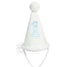 Beyond Creations White Linen Birthday Hat with Light Blue Satin "1"