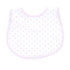 Magnolia Baby white pima cotton bib with allover light pink dots & pink/white gingham trim.