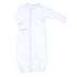 Magnolia Baby white pima cotton Coverter Gown with allover light blue dots & blue/white gingham trim.