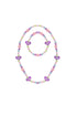 Your heart will go on loving this snappy 2 piece bracelet necklace set. Beaded on a stretchy elastic with a fun sequence of clear coloured beads and large hearts.