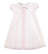 Pleated Baby Girl Day Gown with Peter Pan Collar: White with Pink Trim