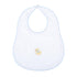 Magnolia Baby white pima cotton bib with light blue picot trim & duckling embroidery.