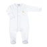 Precious Duckling Embroidered Footie: Light Blue Trim