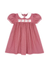 Red Gingham Ruth Ribbon Dress: ABC, Elephant, Christmas Trees, Red/Blue Flowers