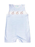 Baby Threads light blue & white Peruvian pima cotton overall with rocking horse smocking.