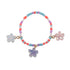 Our Boutique Shimmer Flower bracelet is a cute, delicate, and stylish accessory for any child This delicate bracelet is made with tiny beads and features 3 flower charms in blue, coral, and purple.