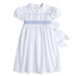 Bella Bliss Smocked Dress with Peter Pan collar & allover periwinkle microdot print.
